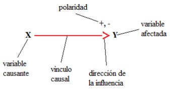 La polaridad del vínculo causal indica el efecto que ofrece la variable causante cuando esta evoluciona, es decir, es la relación de los signos entre el evento y el efecto (Schaffernicht, 2006); por ejemplo: a mayor publicidad, mayores serán las ventas; o, a más muertes, menor será la población. Para estos casos la polaridad del vínculo causal será positiva y negativa, respectivamente.