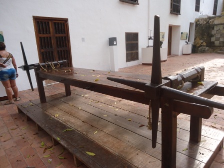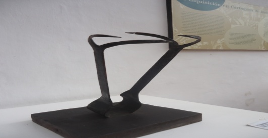 La Inquisición española divulga un manual de técnicas de tortura para hombres y mujeres denunciados ante el Santo Oficio por delitos contra la moral y las buenas costumbres. Fundados en Lima y México en 1579 y luego en Cartagena, en 1610, los tribunales de la Inquisición desarrollan una actividad persecutoria en el continente. Se recurre entonces a castigos y torturas como la horquilla del hereje, el collar de púas, el aplastacabezas, el desgarrador de senos, la guillotina y el garrote2, entre otros. El Santo Oficio se sirve de estos artefactos en contra de los esclavos negros e indígenas con el fin de evitar la sublevación contra el orden imperante, al igual que para reprender la práctica de creencias religiosas ajenas al credo católico.