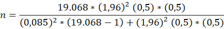 La fórmula utilizada para determinar el tamaño de la muestra fue la siguiente: