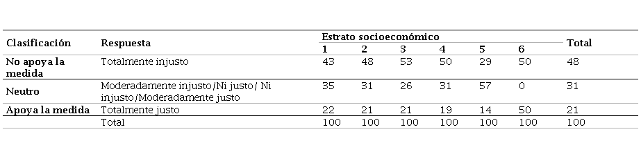 -Apoya la medida: Totalmente de acuerdo / Totalmente Justo.