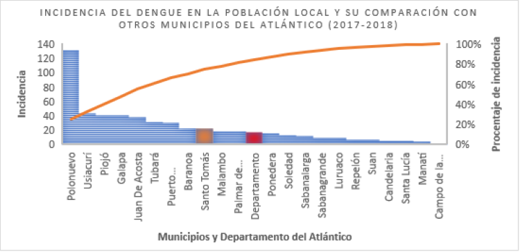En efecto, esta percepción local relatada por Rijnders (2017) contrasta con las cifras oficiales que muestran que para 2017 y 2018 la incidencia de enfermedades transmitidas por vectores, particularmente del dengue, en la población local tomasina (22), fue superior a la del departamento (16); además, confirma el interés de comprender el rol de las actividades humanas en la mitigación del impacto de las plantas acuáticas invasoras con relación a variables como el tiempo viviendo cerca de la ciénaga, el sexo, la percepción de riesgos en salud y los conocimientos locales.