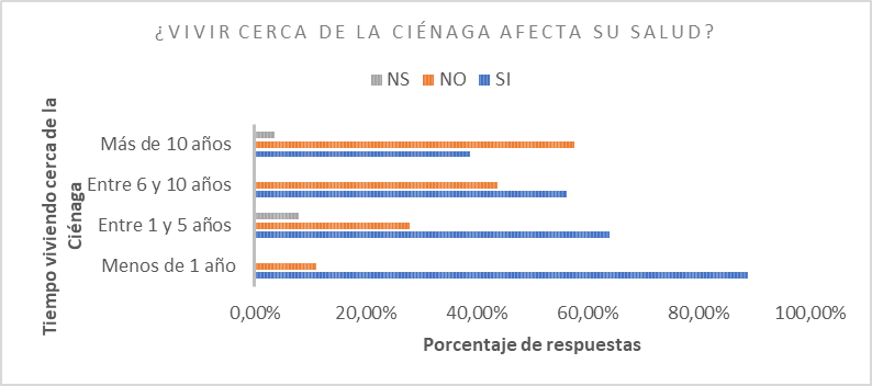 En cuanto al personal médico entrevistado, este insistió en comparar a los habitantes que viven cerca de la ciénaga y los que viven más alejados, concluyendo que los que están más cerca del humedal tienen probabilidad de enfermarse más rápidamente de la piel, de parasitosis o de otras enfermedades.