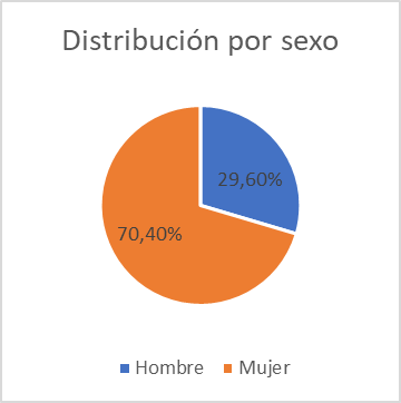 29,6 % de los encuestados eran hombres y 70,4 % eran mujeres.
