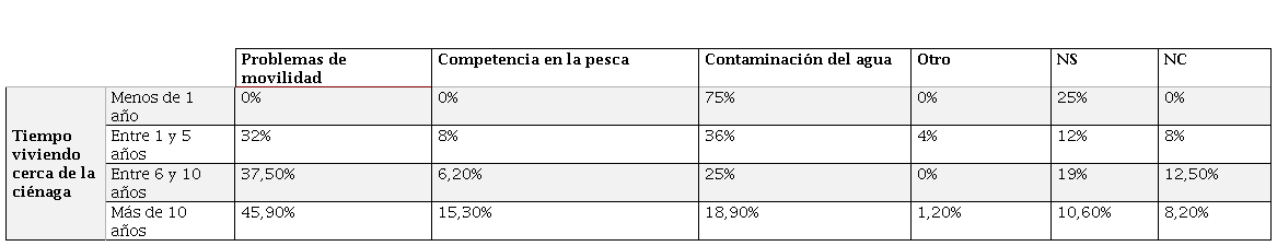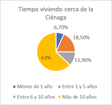 63% de la población tiene más de diez años viviendo cerca a la ciénaga y 25,2% de la población encuestada tiene entre 1 y 5 años viviendo allí.