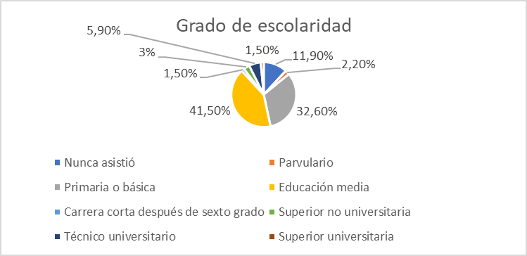 41,5% de la población estudió educación media y 32,6%, primaria o básica. Esto muestra una baja profesionalización entre los encuestados.