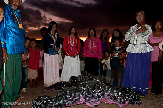 Al final de los 4 días de fiesta, al amanecer, se enterró la tortuga con danzas y cantos (ver foto 6).