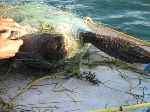 Hasta nosotros hemos inventado técnicas de captura de caguamas, sin hacerles daño. La red circular la encerramos, con un esfuerzo de 5 o 10 o 15 minutos, y al momento que cae a las redes se queda solo 3 minutos y no le pasa nada, está más tiempo en la playa con nosotros que en la red (F. Molina, El Indio, comunicación personal, abril de 2014).