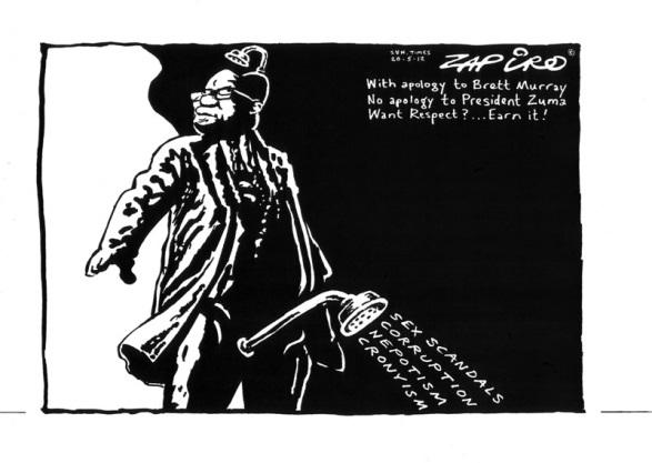No caso de Jacob Zuma, a sua trajetória política foi marcada, dentre outros embates, por uma disputa simbólica (e também política) com o chargista Zapiro que realizou uma intensa e exaustiva obra chárgica, principalmente, denunciando suas práticas e comportamentos pessoais, considerados incompatíveis com sua posição e importância política no país, bem como retratando sua conduta questionável como líder político, marcada por inúmeras denúncias de corrupção.