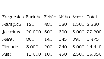 Isto é comprovado através das estatísticas, também levantadas pelo governo do Marquês do Lavradio, no qual a mandioca e o arroz se destacam, dos inventários post-mortem e testamentos (BEZERRA, 2010; RODRIGUES, 2013; PEIXOTO, 2015), e de outras autoridades que visitaram o Recôncavo da Guanabara, como Monsenhor Pizarro (ARAÚJO, 2008).