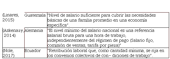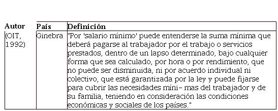 Tabla 1. Definiciones de salarios mínimos según los autores consultados