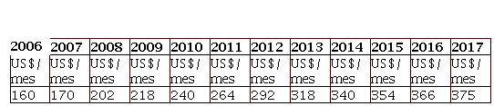 Como se aprecia el SBU ha ido en aumento y comparando el año 2006 con respecto al 2017, se aprecia un crecimiento considerable con un aumento de US $ 215.00, que en términos matemáticos representa un aumento. Con respecto al Salario Básico Unificado planificado para el año 2019, se consideró un incremento del 2,073% con respecto al año 2018, además de establecer los Salarios Mínimos Sectoriales y Tarifas para el Sector Privado por Ramas de Actividad (Derecho Ecuador, 2019). Realmente, estos incrementos no satisfacen las necesidades básicas de un trabajador y su familia.