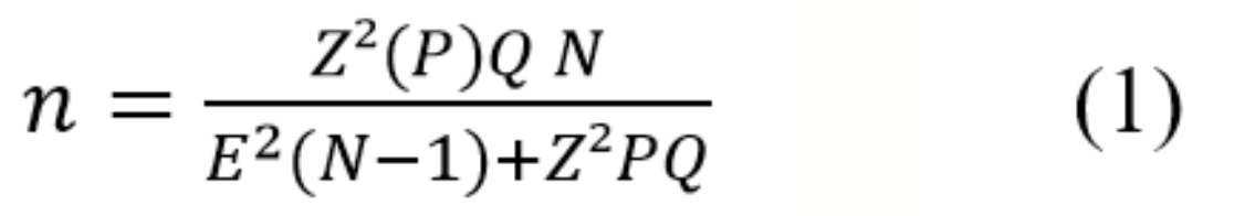 Iniciando con la aplicación de encuestas, que van a proporcionar datos mediante la aplicación de un cuestionario a una muestra de individuos. Esta encuesta tuvo la finalidad de evaluar los conocimientos básicos de seguridad que poseen los trabajadores como visitantes del Parque Temático Agroambiental Ricpamba. Para determinar el número de encuestas necesarias se determina la muestra aplicando la siguiente fórmula matemática: