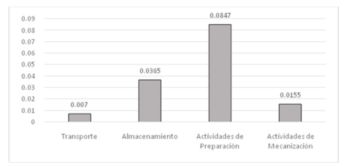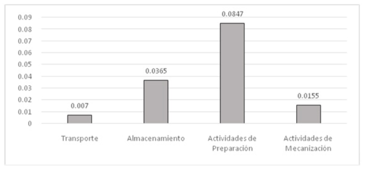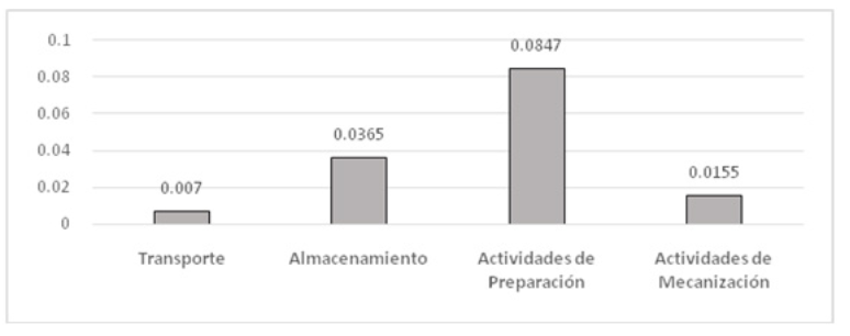 En la Figura 2 se presentan los resultados obtenidos una vez aplicado el método AHP en su etapa de comparación por pares de los niveles de importancia de las diferentes actividades primarias en el procesamiento del Ro