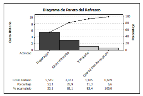 A continuación se presenta el diagrama de Pareto correspondiente a la producción de refrescos (Figura 12)