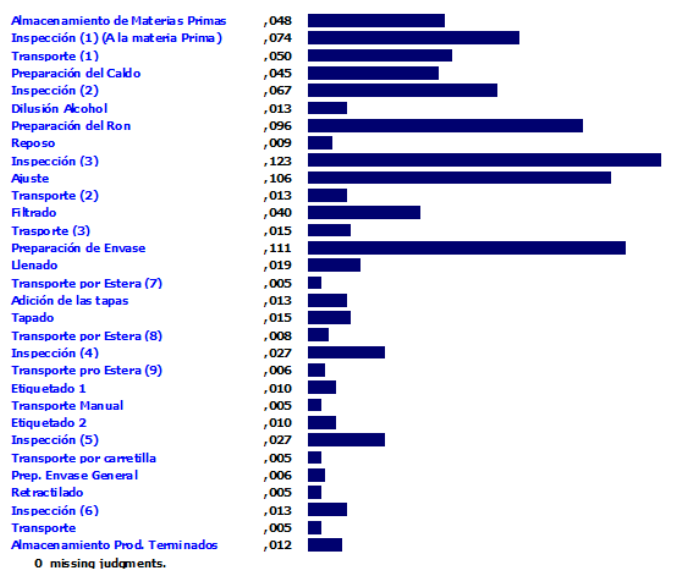 Figura 3: Promedio de los pesos de las actividades del proceso productivo del Ron.