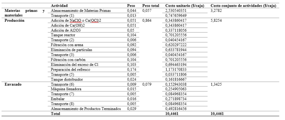 Se realizó de igual manera el análisis de cada una de las actividades del proceso productivo del Refresco. Los resultados se muestran en la Figura 10.