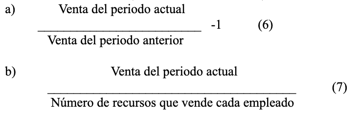 Glosario: El resultado de dividir la Venta del año actual para venta del año anterior menos 1, de esta manera se conocerá el crecimiento porcentual de un periodo de tiempo con otro; por otro lado, conocer la venta por empleado es clave para enfocar la mejora de productividad de cada recurso.