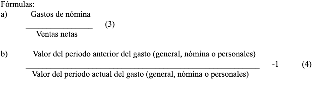Nombre del indicador(es): a) Gastos de nómina a ventas, b) Eficiencia operativa.