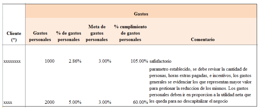 Glosario: Incluye de manera independiente los gastos generales, de nómina y personales; cabe destacar que es importante identificar el porcentaje de participación del gasto de nómina con respecto a la venta, así también él la eficiencia operativa a través del cálculo de % de reducción de gastos de un periodo a otro.