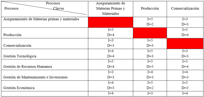 Las relaciones internas son las que se dan entre los procesos claves más los funcionales (los procesos de apoyo que se aprecian en el mapa) con los procesos claves (Tabla 2).