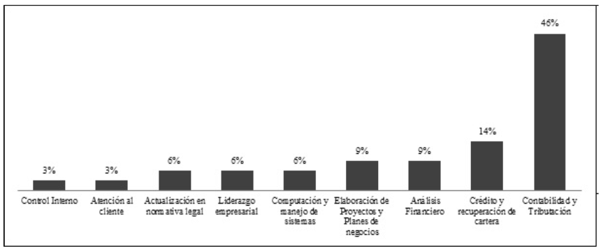 En la Figura 8, la principal necesidad a futuro que se prevén como medidas correctivas es capacitación a sus socios, dentro de ella la temática que presenta mayor complejidad y desconocimiento es la contabilidad y tributación, seguido por el tema crédito y recuperación de cartera y añadiendo al análisis financiero, de tal forma que buscan fortalecer el nivel de confianza en indicadores financieros acoplados a su estructura optimizando su réditos grupales.