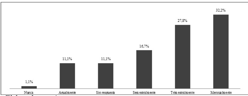 Sin duda alguna la transparencia en el manejo de las cuentas es un principal factor de confianza en las actividades comunitarias, de acuerdo a los datos proporcionados por la encuesta efectuada, el 32,2% presenta una rendición de cuentas mensuales en sus cajas de ahorro, en segunda opción se exterioriza trimestralmente con un 27,8%; y, cada seis meses lo revelan el 16,7% de los encuestados.