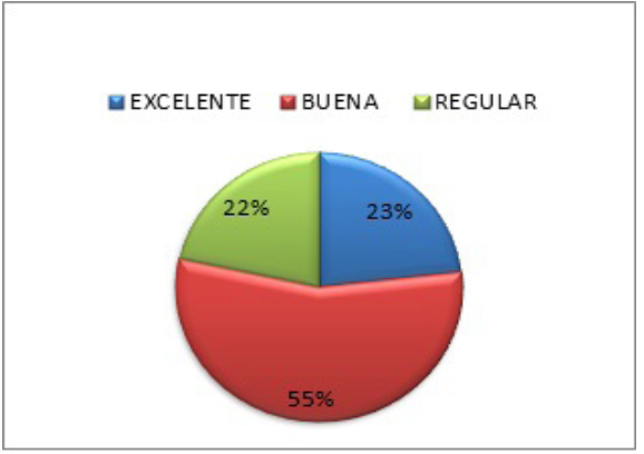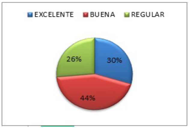 De las personas encuestadas se pudo determinar que un 30% de los pobladores considera que la gestión administrativa del GAD Parroquial de Bachillero es excelente, mientras que el 44% manifestó que es buena y el 26% considera que es regular (Gráfico 1).