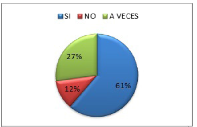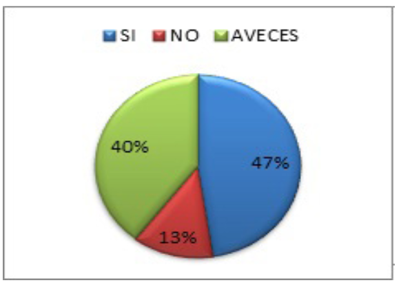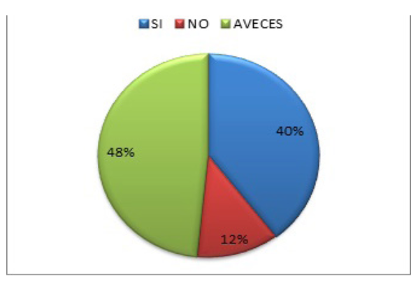 Se pudo conocer que el 40% de los habitantes consideran que el GAD parroquial si atiende las necesidades a tiempo, un 12% manifestó que no, mientras que el 48% considera que solo a veces son atendidas las necesidades en un período aceptable (Gráfico 4).