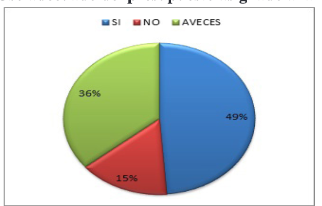 Se logró determinar que un 49% de los habitantes piensan que el presupuesto asignado al GAD parroquial de Bachillero ha sido utilizado correctamente para beneficio de la parroquia y sus comunidades, un 15% considera que no ha sido utilizado correctamente, mientras que el 36% supone que a veces (Gráfico 3).