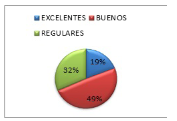 El 19% de las personas encuestadas indican que las obras y servicios brindados por el GAD parroquial en los periodos 2012 - 2015 han sido excelentes, el 49% piensa que son buenos, mientras que el 32% considera que las obras y servicios son regulares (Gráfico 5).