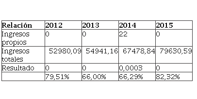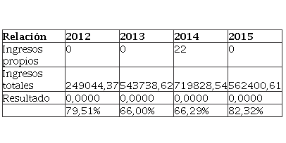 De acuerdo a los datos presentados en el cuadro n. 2 no existe la capacidad para obtener recursos propios para cubrir con las necesidades que pudieran presentarse. Pérez et al. (2012) indican que la autonomía financiera consiste en tomar decisiones de inversión sustanciales en tiempo y dinero, que permitan alcanzar el éxito para sus decisiones de sostenibilidad. Por tanto, se demuestra que la Institución no pude cumplir con obligaciones inmediatas. De acuerdo al COOTAD (2012) en su artículo 187 indica que los gobiernos parroquiales rurales podrán contar con los ingresos provenientes de la delegación que a su favor realicen otros niveles de gobierno autónomo descentralizado y los que provengan de cooperación internacional, legados, donaciones, y actividades de autogestión.