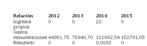 En los años sujetos de estudio sólo en el 2014 existieron $22 cómo ingresos propios