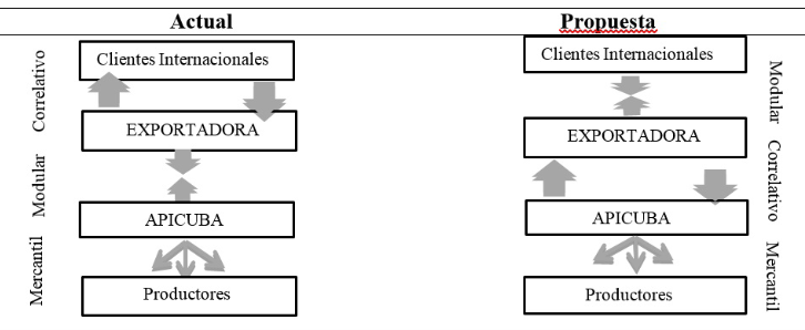El liderazgo potencial de la CDVA apícola en Cuba se encuentra dividido entre el centro de investigación (CIAPI), la empresa APICUBA y el comercializador (CUBAEXPORT). Si prevaleciesen las señales competitivas provenientes del CIAPI, la cadena se articularía en función de procesos más ligados a I+D y la genética. Si en cambio, el liderazgo se concentrara en APICUBA, pudiese esperarse una organización en función de incrementar y mantener los niveles productivos del país con el menor costo posible. Pero, si el liderazgo proviniese de la comercialización, pudiese garantizarse, no solo la transmisión oportuna de las expectativas de los consumidores finales, sino además una gestión de la mayor valorización posible de los bienes y servicios producidos en la cadena.