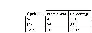De acuerdo a la encuesta realizada, 26 mencionaron que No conocen que es un manual de procedimientos, lo que representa el 87% del total de la población, mientras que 4 de ellos respondieron que si saben que es función realiza este documento en una empresa, lo que equivale al 13%.