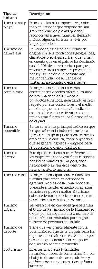 Entre los conceptos más relevantes está el del turismo, mismo que viene a ser una actividad económica que está presente en la agenda de los gobiernos de turno, por considerarlo como la principal entrada de dividas en el futuro inmediato (Ibarra y Panosso, 2016); su participación en la economía de un estado permite que se emitan disposiciones legales para preservar los ecosistemas y medio ambiente en general, como instrumento para la sostenibilidad de la especie humana. Las personas naturales o jurídicas que intervienen en esta importante área de la producción, ejercen un impacto positivo en la creación de fuente de trabajo y tributos que se deben cancelar para actuar dentro de la Ley. Como conceptualización se puede describir que: