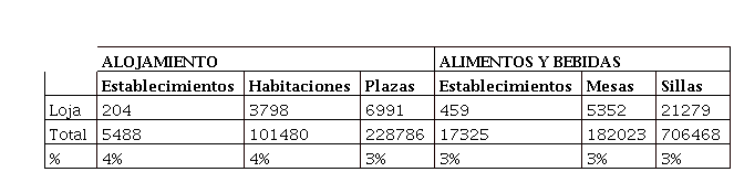 Tabla 4: Datos del turismo en la Provincia de Loja