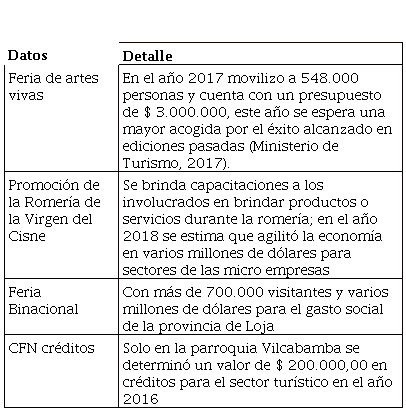 Particularmente en la provincia de Loja, el turismo se ve reflejado en varios escenarios, destacando el cultural, gastronómico, arquitectónico, religioso y paisajes naturales; que tienen el apoyo de las autoridades locales, ocasionando que la provincia vaya afianzando su calidad de entorno turístico a nivel mundial y fortaleciendo un instrumento de recaudación de impuestos que benefician a gran parte de la su población, ya que por el volumen de visitantes, las ventas experimentan un elevado crecimiento en fechas especiales (Cabanilla y Garrido, 2017).