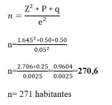 n=La muestra realizada será de 271 personas donde n= Tamaño de la muestra de 271 personas