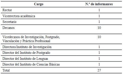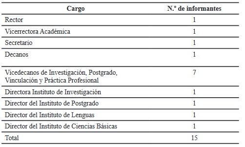 con cargos directivos que involucran tanto gestión administrativa (planificación, organización, integración, dirección y control) como gestión académica (investigación, docencia y vinculación con la sociedad), a través de una entrevista en profundidad.