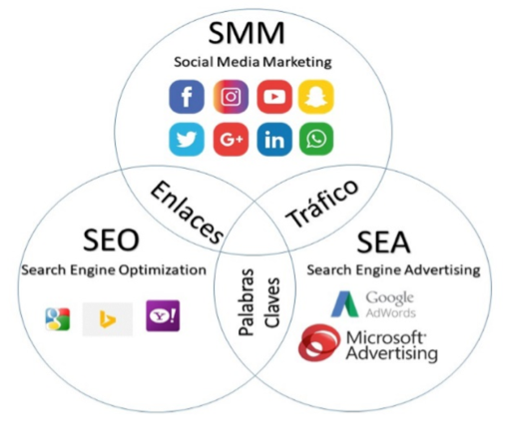Figura 1 Estrategías de posicionamiento SMM, SEO, SEA