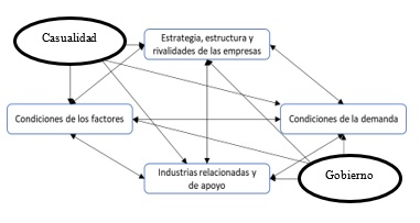 Propuesto por Michael Porter, en donde por medio de su aplicación estima la razón de la ventaja competitiva es más importante en un país con respecto a la competencia del resto del mundo. El modelo propuesto integra cuatro elementos como se muestra en la Figura 1: “Condiciones de los factores, condiciones de la demanda, industrias relacionadas e industrias de apoyo y estructura y rivalidad” (Riasi, 2015).