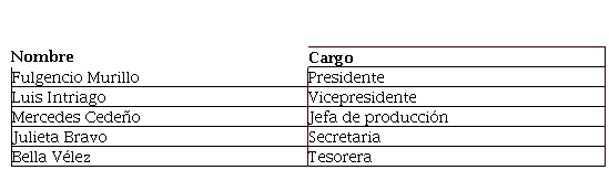 Cuadro 1: Directivos de la Asociación de Cacao San Plácido
