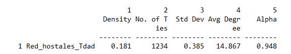 Del análisis de los indicadores a nivel de redes completas mediante el uso de UCINET 6, se deriva- ron los resultados que se relacionan a continuación.