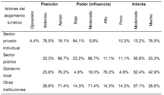 Resulta valido destacar que aun cuando el sector privado individual, con un poder de decisión o influencia bajo, se muestra mayormente indeciso, su posición no constituye un obstáculo para el desarrollo de una propuesta para el establecimiento y mejora de relaciones de colaboración entre actores turísticos.