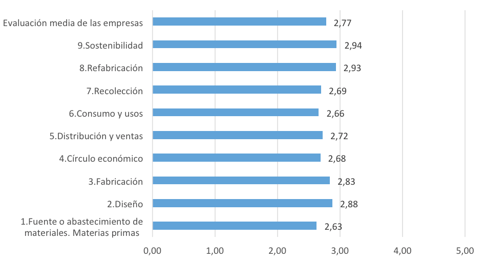 2,66), circulo económico (con una media de 2,68), recolección (con una media de 2,69), distribución