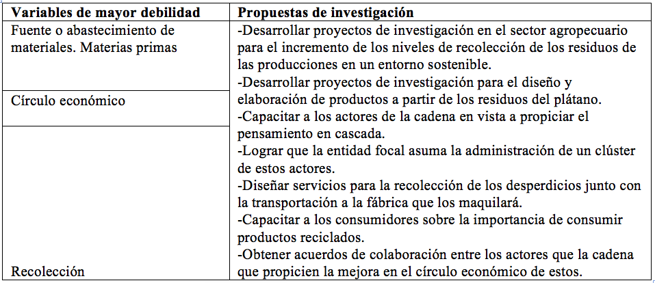 Tabla 6: Propuestas de investigación para impulsar un desarrollo de la economía circular en la cadena agroalimentaria del plátano en Manabí.