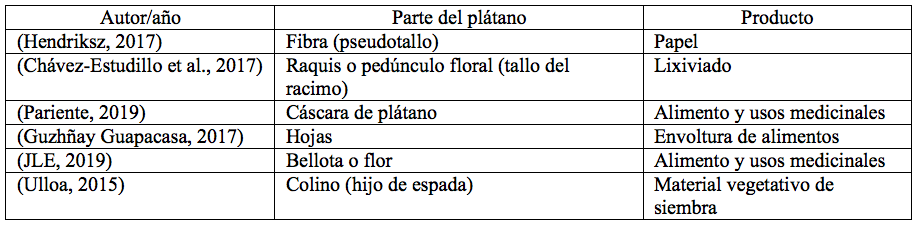 Tabla 3: Derivados del plátano a partir de sus residuos.