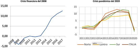 • H2: los efectos de la crisis no fueron homogéneos en todo el País.