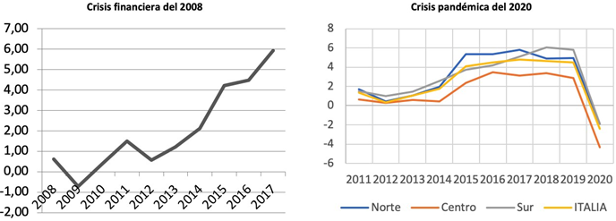 La oferta turística italiana sigue siendo atractiva y las primeras cifras para 2021 sugieren una importante recuperación, a pesar de la obsolescencia de las instalaciones de alojamiento. Este estudio está dedicado a los hoteles, proponiendo un análisis de su rentabilidad mediante el análisis de la evolución de dos ratios del balance, especialmente para evaluar el impacto más reciente de Covid-19 y comparar los efectos de la reciente crisis pandémica con la anterior crisis financiera iniciada en 2008.