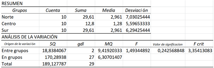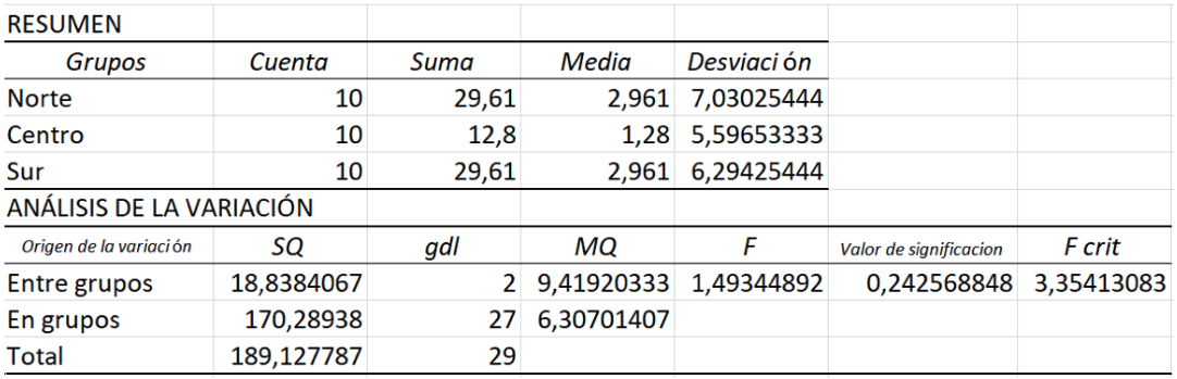 El ROA muestra mayores diferencias dentro de los grupos que entre ellos. El análisis de la varianza no reveló diferencias estadísticamente significativas entre los grupos considerados (F < de F crit). Dado que se acepta la hipótesis nula, no es necesaria la prueba post-Anova.